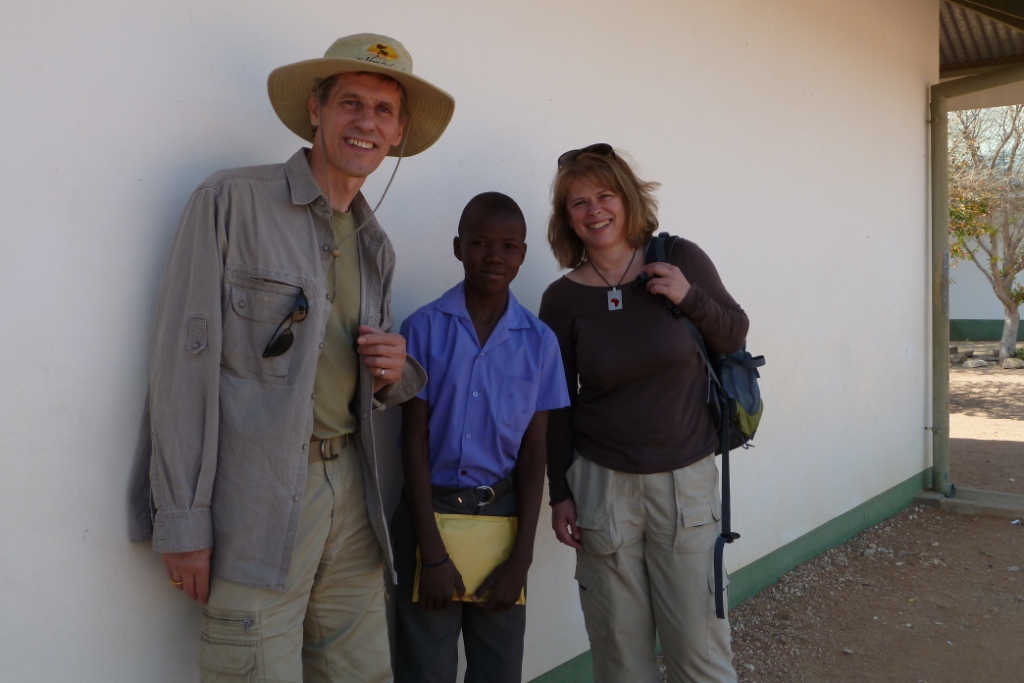 Eines Tages packte meine Freundin Regine ein Päckchen. Die Anschrift bestand aus einem Doppelnamen und dann da war was mit ganz vielen UUUUs. Zielland war Namibia - unser Urlaubsziel für den Sommer 2011. Wir guckten uns an und wussten: sie kann sich den Weg zur Post sparen - das Päckchen bring ich dem Kind mit dem komplizierten Namen persönlich vorbei.